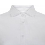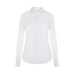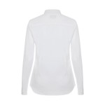 Camisa entallada de mujer en tejido popelín stretch. Ligera, cómoda y con diseño elegante para hostelería y atención al cliente.