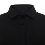 Camisa entallada de mujer en tejido popelín stretch. Ligera, cómoda y con diseño elegante para hostelería y atención al cliente.