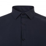 La camisa 405016S está elaborada en popelín stretch de tacto suave y ligero. Su cuello italiano y el corte entallado con pinzas traseras aseguran una apariencia moderna y cómoda durante toda la jornada.
