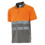 Polo de manga corta alta visibilidad color Naranja flúor/gris, ref. 173_08/19, Velilla