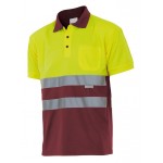 Polo de manga corta alta visibilidad color Amarillo flúor/granate, ref. 173_18/20, Velilla