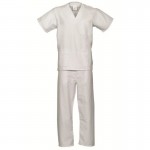 Pijama blanco unisex cuello pico compuesto de chaqueta y pantalón.